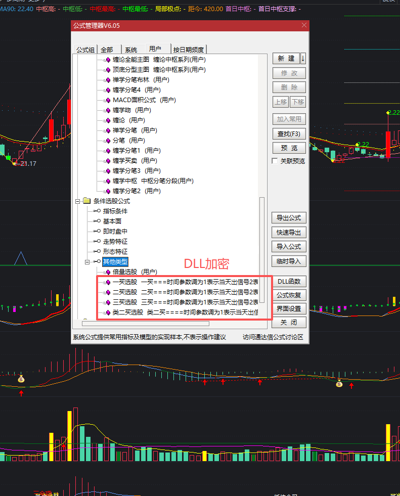 部分缠论主图附图选股用到DLL加密,无法破解,提供DLL可以使用,看不了源码,介意勿买